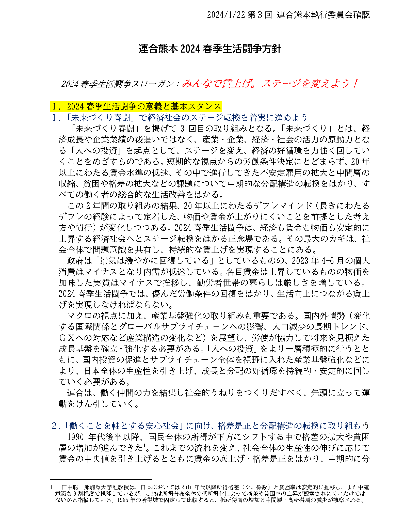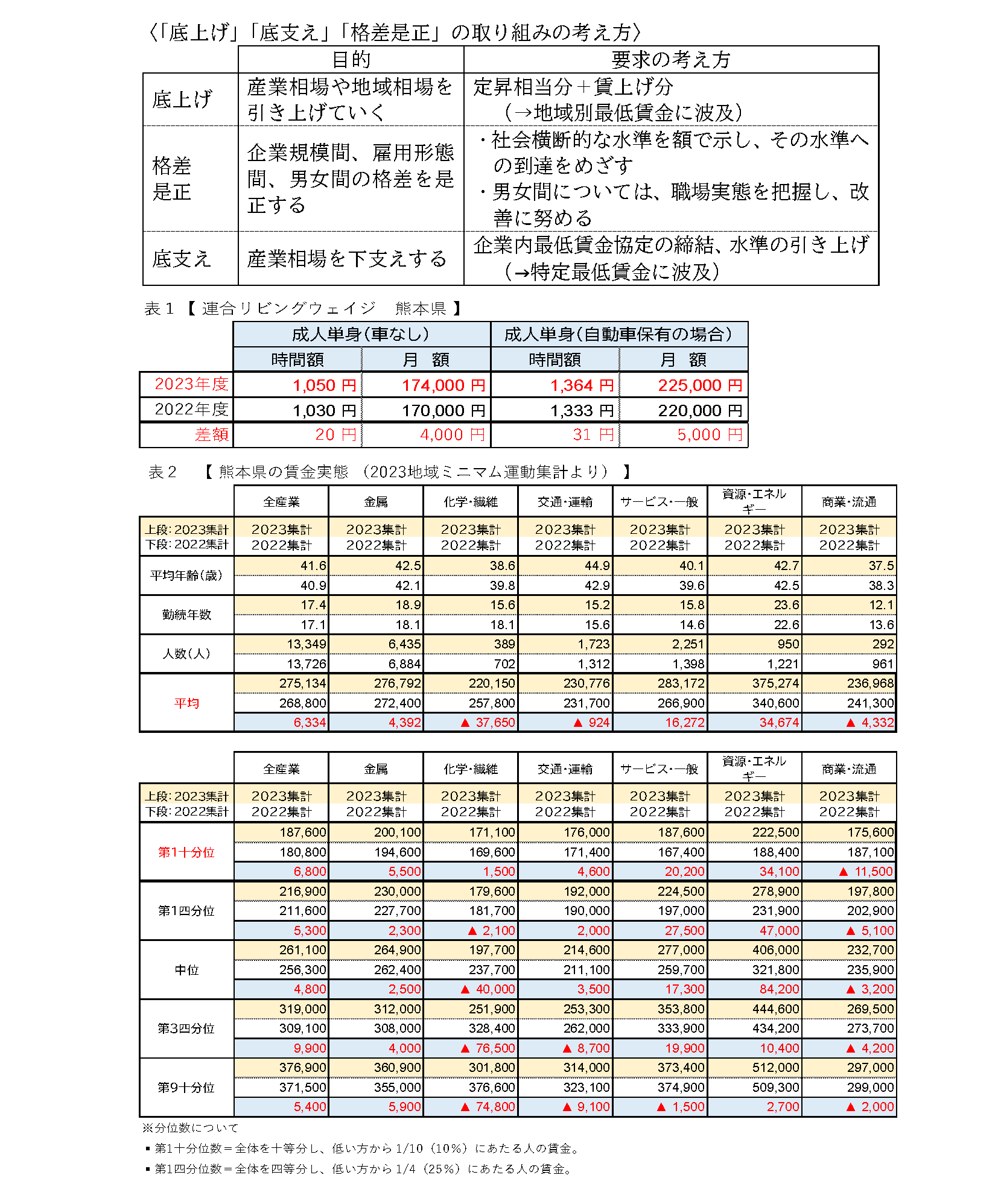 連合熊本地域ミニマム運動(個別賃金実態調査)集計結果について